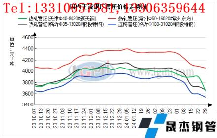 圖1 2023年-2024年十大主導城市108*4.5連軋無縫管市場均價走勢圖