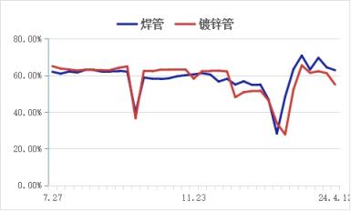津冀區(qū)域管廠(chǎng)焊鍍管產(chǎn)能利用率走勢(shì)圖