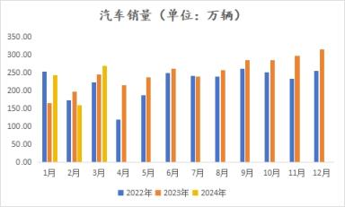 據(jù)中國(guó)汽車工業(yè)協(xié)會(huì)統(tǒng)計(jì),2024年3月,汽車產(chǎn)銷分別完成268.7萬輛和269.4萬輛,環(huán)比分別增長(zhǎng)78.4%和70.2%,同比分別增長(zhǎng)4%和9.9%。2024年1-3月,汽車產(chǎn)銷分別完成660.6萬輛和672萬輛,同比分別增長(zhǎng)6.4%和10.6%。