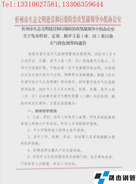 根據(jù)忻州市重污染天氣監(jiān)測預(yù)警組會(huì)商研判,2022年1月4日0時(shí)起 ,忻府、定襄、原平3縣(市、區(qū))啟動(dòng)重污染天氣橙色預(yù)警(二級)響應(yīng)機(jī)制,解除時(shí)間另行通知。相關(guān)強(qiáng)制性污染減排措施為: