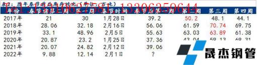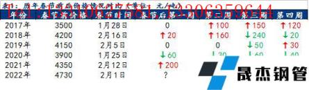 截至1月25日,貴陽市場主流建筑鋼材價格4730元/噸,較2021年春節(jié)前價格高出380元/噸,幅度達8.7%,為近年來春節(jié)前最高水平。2021年國慶之后,在國家宏觀調(diào)控下,原燃料價格幾近腰斬,帶動鋼價走弱,疊加房地產(chǎn)不斷暴雷,需求不及預(yù)期,短短半個月時間貴陽建材價格下跌近1300元/噸,跌幅達22.4%,隨后在金融、基建、冬奧會等利好刺激下逐步修復(fù),春節(jié)前鋼材價格持續(xù)偏強,而全國限產(chǎn)不斷,本地電爐企業(yè)于12月初基本停產(chǎn)減產(chǎn),供應(yīng)端壓力較小,全國庫存處于較低位置,冬儲政策不及預(yù)期,大部分無縫鋼管廠無冬儲政策,僅資金政策給與貿(mào)易商,商家普遍冬儲意愿較差,節(jié)前無縫鋼管廠拉漲更是讓貿(mào)易商對節(jié)后價格不容樂觀,同時終端抵觸高價情緒愈發(fā)強烈,整體觀望情緒較濃。據(jù)歷史數(shù)據(jù)來看,2017年以來,除去2020年受全球公共突發(fā)事件影響鋼價持續(xù)走弱,其余年份春節(jié)后貴陽建筑鋼材價格前兩周上漲的概率達50%,前兩周下跌概率為0;春節(jié)后前三周上漲概率達50%,前三周下跌概率達50%;春節(jié)后前四周上漲概率達50%,下跌概率達25%。整體來看,節(jié)后鋼價偏強運行概率較大。