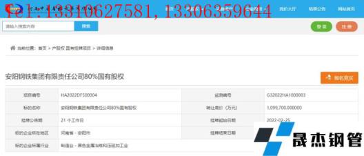 免責聲明:本網站(山東聊城晟杰無縫鋼管廠m.hccoo.com)刊載的“混改倒計時!安鋼集團110億掛牌轉讓!二十余鋼企有接手資格?”等均源于網絡,版權歸原作者所有,且僅代表原作者觀點,本文所載信息僅供參考。轉載僅為學習與交流之目的,如無意中侵犯您的合法權益,請及時聯系刪除。本網站刊登此篇文章并不意味著本站贊同其觀點或證實其內容的真實性,我們不對其科學性、嚴肅性等作任何形式的保證。如果侵犯了您的版權,請盡快聯系我們予以撤銷,謝謝合作!