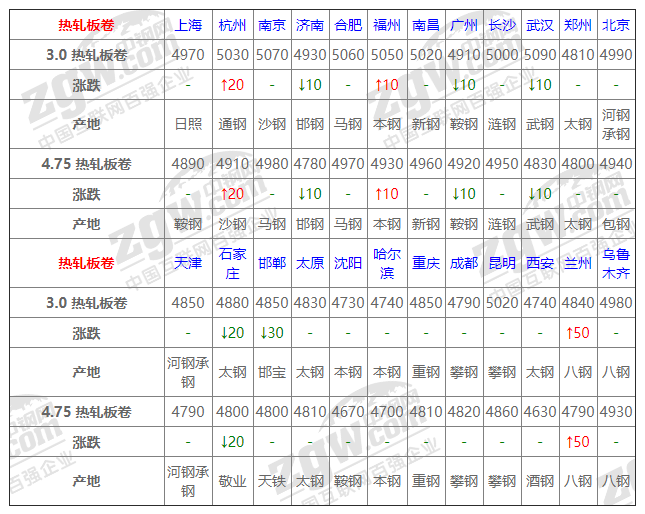 12月8日熱軋板卷價(jià)格:穩(wěn)中漲跌;