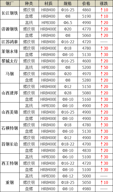 免責(zé)聲明:本網(wǎng)站(山東聊城晟杰無縫鋼管廠m.hccoo.com)刊載的“2021年12月8日鋼廠調(diào)價(jià)+12月8日全國(guó)鋼材實(shí)時(shí)價(jià)格!”等均源于網(wǎng)絡(luò),版權(quán)歸原作者所有,且僅代表原作者觀點(diǎn),本文所載信息僅供參考。轉(zhuǎn)載僅為學(xué)習(xí)與交流之目的,如無意中侵犯您的合法權(quán)益,請(qǐng)及時(shí)聯(lián)系刪除。本網(wǎng)站刊登此篇文章并不意味著本站贊同其觀點(diǎn)或證實(shí)其內(nèi)容的真實(shí)性,我們不對(duì)其科學(xué)性、嚴(yán)肅性等作任何形式的保證。如果侵犯了您的版權(quán),請(qǐng)盡快聯(lián)系我們予以撤銷,謝謝合作!