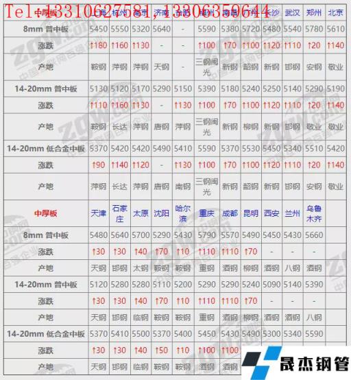 全國23個(gè)主要市場14-20mm 低合金中板平均價(jià)格5433元/噸,較上個(gè)交易日上調(diào)67元/噸。