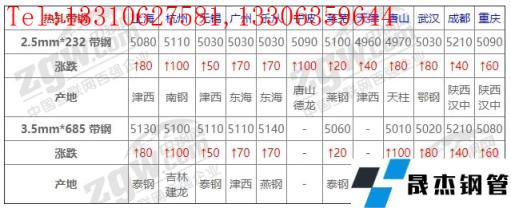 全國12個(gè)主要市場2.5mm*232 帶鋼平均價(jià)格5061元/噸,較上個(gè)交易日上調(diào)66元/噸。