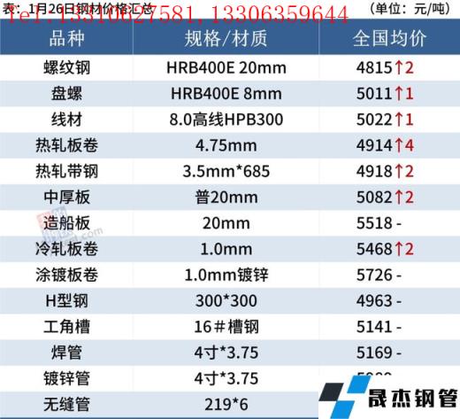 1月26日,國內鋼材市場小幅上漲為主,唐山鋼坯出廠價格穩報4480元/噸。成交方面,工程項目大多進入到收尾階段,新一輪降溫雨水天氣來臨,成交整體繼續縮量。