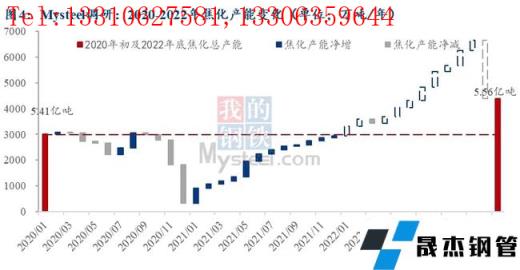 截至2021年1月21日,據(jù)調(diào)研統(tǒng)計,到2022年底總焦化產(chǎn)能預計將達到5.54億噸/年,將高于2021年底的5.4億噸/年,年增幅2.9%。