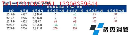 小編匯總近5年春節(jié)后四周鍍鋅板卷均價(jià)變化情況,以供參考。