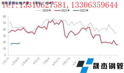 從上圖可以看出,1月份京津冀建材無縫厚壁鋼管廠家的螺紋鋼產(chǎn)量持續(xù)在低位徘徊,截至1月底,螺紋鋼周產(chǎn)量降至18.6萬(wàn)噸,產(chǎn)能利用率僅為19.87%,依然是敬業(yè)、承鋼、樂鋼、鑫達(dá)等無縫厚壁鋼管廠家的螺紋鋼產(chǎn)線在產(chǎn),且這些無縫厚壁鋼管廠家螺紋鋼產(chǎn)線都未正常生產(chǎn)。2月份,京津冀建材無縫厚壁鋼管廠家的螺紋鋼產(chǎn)量變動(dòng)不大,其中承鋼計(jì)劃新增一條螺紋產(chǎn)線復(fù)產(chǎn),全月計(jì)劃建材產(chǎn)量21萬(wàn)噸左右,較上月實(shí)際產(chǎn)量提升9萬(wàn)噸左右;樂鋼2月份高爐檢修,20日之前減少一條螺紋產(chǎn)線的產(chǎn)量,產(chǎn)量月環(huán)比減少7萬(wàn)噸左右,且主要減少對(duì)京津區(qū)域的投放。另外東北、西北無縫厚壁鋼管廠家資源資源發(fā)往華南的周期較長(zhǎng),風(fēng)險(xiǎn)度較大,因此東北、西北無縫厚壁鋼管廠家資源傾向于發(fā)往京津冀區(qū)域,其中海鑫計(jì)劃于1月底-2月份發(fā)往北京的資源量4萬(wàn)噸左右,西林計(jì)劃往北京投放3-4萬(wàn)噸,另外陜西龍鋼在1月份已向北京投放2萬(wàn)噸左右資源。