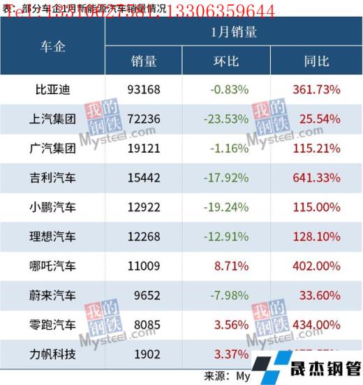 免責聲明:本網站(山東聊城晟杰無縫鋼管廠m.hccoo.com)刊載的“1月10家車企新能源汽車銷量同比大增”等均源于網絡,版權歸原作者所有,且僅代表原作者觀點,本文所載信息僅供參考。轉載僅為學習與交流之目的,如無意中侵犯您的合法權益,請及時聯系刪除。本網站刊登此篇文章并不意味著本站贊同其觀點或證實其內容的真實性,我們不對其科學性、嚴肅性等作任何形式的保證。如果侵犯了您的版權,請盡快聯系我們予以撤銷,謝謝合作!