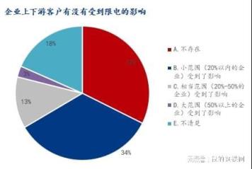 關于企業的上下游客戶有沒有受到限電的影響,參與調研企業中表示不存在占比32.37%,小范圍(20%以內的企業)受到了影響占比34.15%,相當范圍(20%-50%的企業)受到了影響占比12.42%,大范圍(50%以上的企業)受到了影響占比2.66%,不清楚占比18.40%。可見還是有相當一部分企業受到了限電影響。