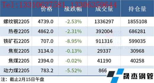 免責聲明:本網站(山東聊城晟杰無縫鋼管廠m.hccoo.com)刊載的“2022年02月15日午報:鋼價普遍下跌,鐵礦石期貨跌逾8%”等均源于網絡,版權歸原作者所有,且僅代表原作者觀點,本文所載信息僅供參考。轉載僅為學習與交流之目的,如無意中侵犯您的合法權益,請及時聯系刪除。本網站刊登此篇文章并不意味著本站贊同其觀點或證實其內容的真實性,我們不對其科學性、嚴肅性等作任何形式的保證。如果侵犯了您的版權,請盡快聯系我們予以撤銷,謝謝合作!