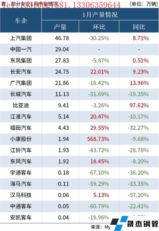 免責聲明:本網站(山東聊城晟杰無縫鋼管廠m.hccoo.com)刊載的“1月我國汽車產銷降幅明顯,多數車企呈現雙位數下跌”等均源于網絡,版權歸原作者所有,且僅代表原作者觀點,本文所載信息僅供參考。轉載僅為學習與交流之目的,如無意中侵犯您的合法權益,請及時聯系刪除。本網站刊登此篇文章并不意味著本站贊同其觀點或證實其內容的真實性,我們不對其科學性、嚴肅性等作任何形式的保證。如果侵犯了您的版權,請盡快聯系我們予以撤銷,謝謝合作!
