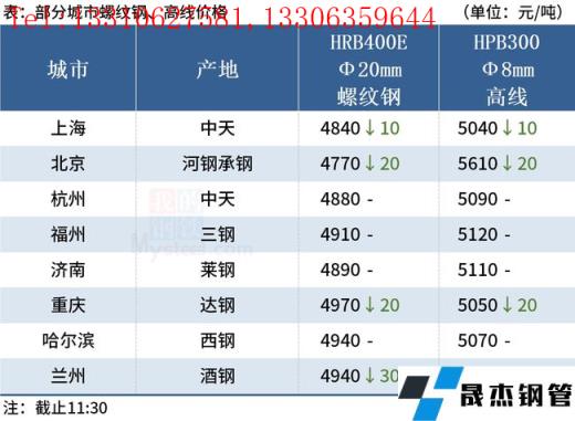 ◎海鹽:18日海鹽拉絲價(jià)格上漲20,Q195華西4990九江4990鑄管5030,Q235九江4970北臺(tái)4910。(單位:元/噸)