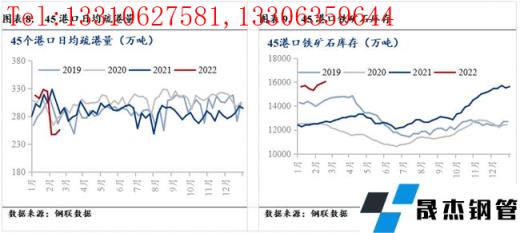 自2021年11月中旬以來,鐵礦石價格上漲400元/噸,漲幅達(dá)69.32%;相應(yīng)的高爐開工率下降2.15%。市場普遍認(rèn)為鐵礦石價格上漲偏離實際基本面情況,疊加2月15日鐵礦石迎來強(qiáng)監(jiān)管,鐵礦石價格出現(xiàn)回落。2月18日,本周五鐵礦石價格820元/噸,較上周下跌133元/濕噸。鐵礦石價格下跌從兩個方面影響厚壁無縫鋼管價格:A、厚壁無縫鋼管成本下移,厚壁無縫鋼管支撐減弱;B、扭轉(zhuǎn)黑色產(chǎn)業(yè)鏈偏樂觀的市場情緒,降低厚壁無縫鋼管追漲的風(fēng)險偏好,從而帶動厚壁無縫鋼管價格下跌。