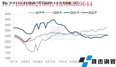 今年1月以來廢鋼價格上漲有兩方面的原因:一是無縫厚壁鋼管廠家的廢鋼需求存在季節性擴大;二是成材價格上漲聯動廢鋼價格上漲。今年1月以來廢鋼的漲幅為2.49%,五大材的漲幅也均在2%-3%之間;另外就廢-鐵價差而言,以江蘇地區的廢-鐵價差為例,今年1月以來廢-鐵價差均值為237元/噸,過去四年的同時期中江蘇地區的廢-鐵價差均值最低為-334元/噸,最高為361元/噸。所以今年1月以來廢鋼價格高出鐵水成本也是處在相對合理的區間之內。