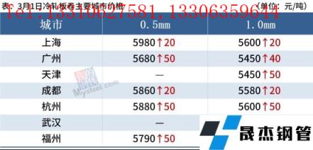 冷軋板卷:3月1日,全國24個主要城市1.0mm冷卷均價5572元/噸,較上個交易日上漲27元/噸。今日黑色系期貨市場大幅拉漲,現貨市場大幅跟漲,市場成交放量明顯,統計數據顯示,全國冷軋板卷市場出貨量為33044噸,較上個交易日增加3824噸,增幅13.09%。綜合來看,預計2日全國冷軋價格有望窄幅上調。