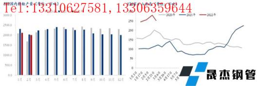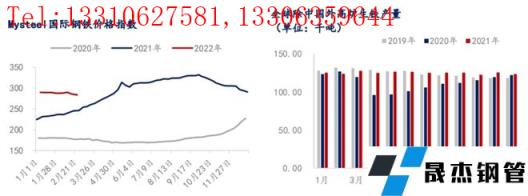 海外需求:國際鋼價(jià)震蕩下行,1月各國高爐生產(chǎn)運(yùn)行穩(wěn)定。截至2月25日,國際鋼鐵價(jià)格指數(shù)較上月底下降3.9個(gè)點(diǎn),降幅1.4%。世鋼協(xié)最新數(shù)據(jù)顯示,1月除中國外生鐵產(chǎn)量3841.1萬噸,日均123.9萬噸/天,環(huán)比上月增加0.1萬噸/天,增幅0.1%。1月各國高爐生產(chǎn)運(yùn)行穩(wěn)定,目前的鋼價(jià)對無縫厚壁鋼管廠家生產(chǎn)積極性仍支撐,但是2月和3月,俄烏軍事行動讓其涉及的高爐生產(chǎn)充滿不確定性,兩國1月生鐵產(chǎn)量占全球除中國外生鐵產(chǎn)量的17%。