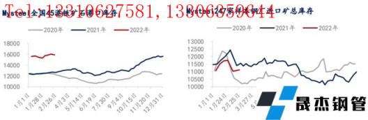 鐵礦石疏港:2月受限產(chǎn)限產(chǎn)影視,疏港大幅下降。截至2月25日,預(yù)計(jì)統(tǒng)計(jì)中國45港2月疏港量7364萬噸,日均疏港環(huán)比下降50.5萬噸/天至263萬噸/天,降幅16.1%。本月疏港降幅主要華北和華東地區(qū),一方面是由于春節(jié)期間無縫厚壁鋼管廠家消化廠內(nèi)庫存為主,提貨需求下降,另一方面是由于部分港口冬奧會期間有環(huán)保限運(yùn)措施,無縫厚壁鋼管廠家提貨受阻導(dǎo)致。3月來看,隨著無縫厚壁鋼管廠家復(fù)產(chǎn)和限運(yùn)限產(chǎn)得相對放松,疏港逐漸恢復(fù)提高,3月疏港或能恢復(fù)到300-305萬噸/天。