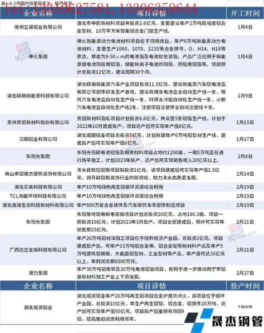 據不完全整理,2022年1-2月國內共14個鋁項目開工、投產。其中,1月淮北市中匠新材料項目、神火新能源動力電池材料項目等5個項目開工;2月東陽光低碳電池鋁箔項目、浠水縣數控鋁板項目等8個項目開工,湖北城資鋁業年產20萬噸再生鋁項目投產。具體內容如下: