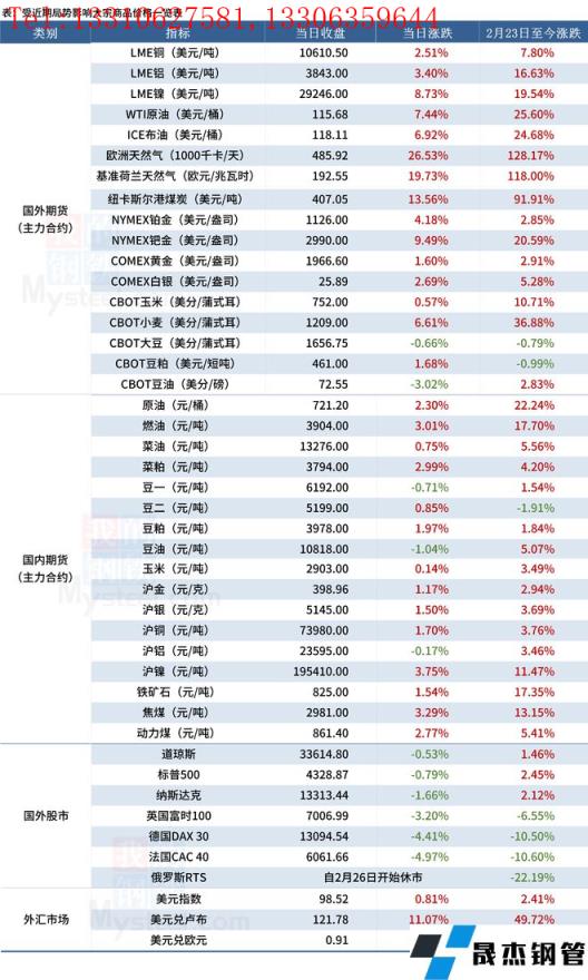 近期,受?chē)?guó)際局勢(shì)影響,全球金融及大宗商品市場(chǎng)出現(xiàn)較大波動(dòng)。3月4日,歐美股市經(jīng)歷“黑色星期五”,國(guó)際油價(jià)、天然氣大幅上漲,油價(jià)本周波動(dòng)幅度創(chuàng)歷史新高。匯總情況如下: