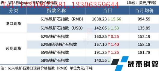 ◎3月8日,全國主港鐵礦石成交90.50萬噸,環比減22.1%;237家主流貿易商建材成交13.95萬噸,環比減44.8%。