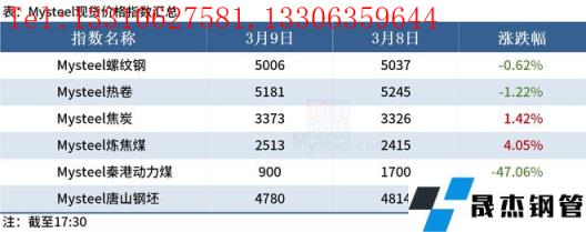 ◎ 截止3月9日,調(diào)研的山東11家長短流程無縫厚壁鋼管廠家綜合廢鋼比19.88%,周環(huán)比增7.81%;廢鋼消耗總量在13.76萬噸,周環(huán)比增2.27萬噸;廢鋼庫存為13.79萬噸,周環(huán)比減0.97萬噸。詳情>>