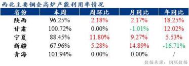 一、西北區(qū)域無縫厚壁鋼管廠家高爐生產情況