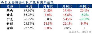 本周對西北區(qū)域15家建筑厚壁無縫鋼管生產企業(yè)同口徑調查顯示,目前西北區(qū)域15家鋼鐵生產企業(yè)38座高爐實際開工高爐37座,新疆區(qū)域新增4座高爐復產,高爐開工率為67.96%,周環(huán)比提升5.28%;高爐實際產量71.2萬噸,周環(huán)比增加7.28萬噸;高爐產能利用率85.88%,周環(huán)比提高8.78%。