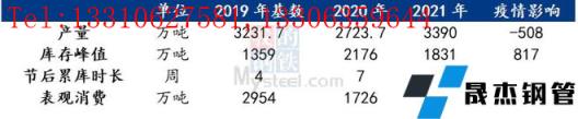 據(jù)樣本數(shù)據(jù)統(tǒng)計(jì),以2020年疫情初發(fā)期間市場情況為例,以2019年數(shù)據(jù)為參考基數(shù)。受疫情影響,2020年春季樣本無縫厚壁鋼管廠家受疫情影響供給影響螺紋鋼產(chǎn)量508萬噸,同時(shí)春節(jié)后累庫周期增加3周,表觀消費(fèi)減少1228萬噸,消費(fèi)供給影響比約為2.42:1。