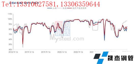 本周對汾渭區域13家建筑厚壁無縫鋼管生產企業同口徑調查顯示,汾渭區域13家鋼鐵生產企業共有高爐37座,實際開工高爐34座,本周高爐開工率為91.89%,周環比上升2.71%;本周高爐實際生產量73.95萬噸,周環比增加2.9萬噸,產能利用率為84.72%,周環比上升3.32%。