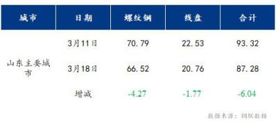 本周山東市場建筑厚壁無縫鋼管社會庫存繼續回落,為庫存拐點出現以來的第4周降庫。根據調研,本周庫存總量87.28萬噸,較上周下降6.04萬噸,降幅6.47%,周環比降幅加快。具體情況如下:本周山東13個主要城市螺紋鋼66.52萬噸,較上周下降4.27萬噸;盤螺20.76萬噸,較上周下降1.77萬噸。