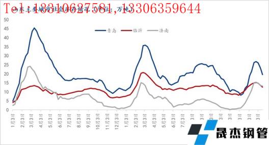 具體來看,山東省三大主導性市場(青島、臨沂、濟南)的樣本倉庫建筑厚壁無縫鋼管社會庫存總量為45.27萬噸,周環比減少5.32萬噸,降幅10.52%。(圖1所示)