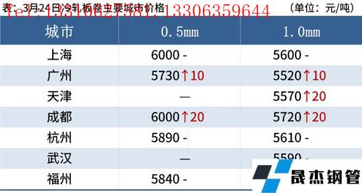 冷軋板卷:3月24日,全國24個主要城市1.0mm冷卷均價5656元/噸,較上個交易日上漲10元/噸。今日早間市場報價紛紛上漲20-30元/噸,詢單人數明顯增加,但由于疫情影響,需求持續疲軟,多數市場存在暗降優惠現象,貿易商以出貨回籠資金為主,心態較為謹慎。庫存方面,據不完全統計,現冷軋無縫厚壁鋼管廠家庫存38.68萬噸,周環比增加4.74萬噸,社會庫存140.37萬噸,周環比減少2.75萬噸,周消費量81.67萬噸,環比減少1.45萬噸。綜合來看,故預計25日國內冷軋板卷價格或將盤整運行。