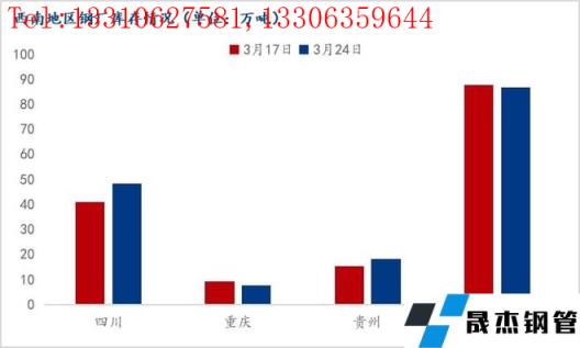 截至3月24日,西南地區建筑厚壁無縫鋼管社會庫存總量192.18萬噸,已經連續三周下降,庫存拐點基本顯現,庫存峰值于3月3日出現,為207.08萬噸,較去年庫存高點減少64.75萬噸,降幅達23.82%。主要原因是:1、西南地區價格全國洼地,北方無縫厚壁鋼管廠家對西南地區資源投放量大幅減少,尤其是川渝地區;2、廣東廣西等區域價格高企,云南無縫厚壁鋼管廠家維持低庫存運轉,加大對兩廣等周邊區域資源投放;3、受廢鋼不足、環保檢查、利潤低等因素影響,西南地區電爐企業春節放假時間較往年提前,總體產量下降;4、冬儲價格偏高,商家對春節后需求普遍擔憂,冬儲操作較為謹慎,冬儲體量較往年偏低。綜上原因,西南地區建筑厚壁無縫鋼管社會庫存較去年低。