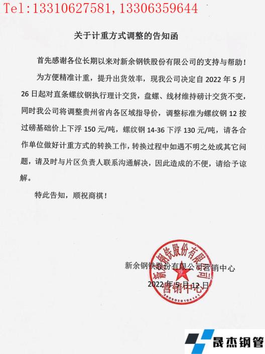 免責聲明:本網站(山東聊城晟杰無縫鋼管廠m.hccoo.com)刊載的“新余鋼鐵股份有限公司關于對貴州區域計重方式調整的告知函”等均源于網絡,版權歸原作者所有,且僅代表原作者觀點,本文所載信息僅供參考。轉載僅為學習與交流之目的,如無意中侵犯您的合法權益,請及時聯系刪除。本網站刊登此篇文章并不意味著本站贊同其觀點或證實其內容的真實性,我們不對其科學性、嚴肅性等作任何形式的保證。如果侵犯了您的版權,請盡快聯系我們予以撤銷,謝謝合作!