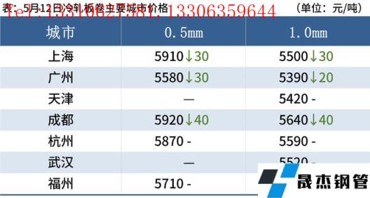 冷軋板卷:5月12日,全國(guó)24個(gè)主要城市1.0mm冷卷均價(jià)5569元/噸,較上個(gè)交易日下跌7元/噸。今日黑色系期貨盤面呈高開(kāi)低走,現(xiàn)貨市場(chǎng)報(bào)價(jià)混亂,部分商家報(bào)價(jià)以穩(wěn)為主,今日成交表現(xiàn)偏差。心態(tài)方面,南方近期進(jìn)入汛期,市場(chǎng)需求或?qū)⒂兴鶞螅碳倚膽B(tài)多謹(jǐn)慎,當(dāng)下操作以出貨成交為主。庫(kù)存方面,據(jù)不完全統(tǒng)計(jì),本周冷軋無(wú)縫厚壁鋼管廠家?guī)齑?3.05萬(wàn)噸,周環(huán)比減少1.08萬(wàn)噸,社會(huì)庫(kù)存136.81萬(wàn)噸,周環(huán)比減少2.60萬(wàn)噸,周消費(fèi)量83.81萬(wàn)噸,環(huán)比增加0.50萬(wàn)噸。綜合來(lái)看,故預(yù)計(jì)13日國(guó)內(nèi)冷軋板卷價(jià)格或?qū)⒄鹗幤踹\(yùn)行。
