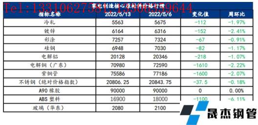 免責聲明:本網站(山東聊城晟杰無縫鋼管廠m.hccoo.com)刊載的“家電原材料周報(5.9-5.13)”等均源于網絡,版權歸原作者所有,且僅代表原作者觀點,本文所載信息僅供參考。轉載僅為學習與交流之目的,如無意中侵犯您的合法權益,請及時聯系刪除。本網站刊登此篇文章并不意味著本站贊同其觀點或證實其內容的真實性,我們不對其科學性、嚴肅性等作任何形式的保證。如果侵犯了您的版權,請盡快聯系我們予以撤銷,謝謝合作!