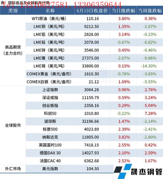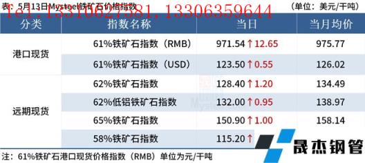 ◎5月13日,全國(guó)主港鐵礦石成交93.50萬(wàn)噸,環(huán)比增76.4%;237家主流貿(mào)易商建材成交15.61萬(wàn)噸,環(huán)比增27%。