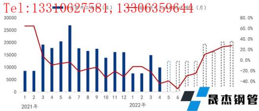 最后再來看新開工下滑所致的用鋼需求減少量,廣州期貨研究中心研究表明,地產(chǎn)新開工面積與施工面積對(duì)用鋼需求的貢獻(xiàn)約6:4;而據(jù)測(cè)算,螺紋鋼約65%用于地產(chǎn)鋼需。以此估算2022年房地產(chǎn)新開工面積下降所致的螺紋鋼消費(fèi)將同比減量約1816萬噸,建筑厚壁無縫鋼管消費(fèi)將同比減量約2754萬噸。