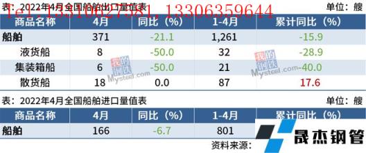 4月船舶進(jìn)口166艘,同比減少6.7%;1-4月累計(jì)進(jìn)口801艘,同比增長6.2%。