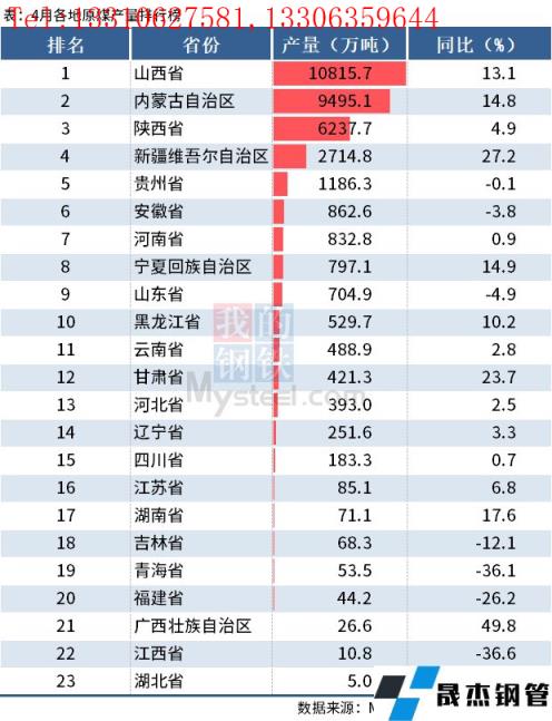 免責聲明:本網站(山東聊城晟杰無縫鋼管廠m.hccoo.com)刊載的“統計局:前4月全國分省市原煤產量出爐,山西增近10%”等均源于網絡,版權歸原作者所有,且僅代表原作者觀點,本文所載信息僅供參考。轉載僅為學習與交流之目的,如無意中侵犯您的合法權益,請及時聯系刪除。本網站刊登此篇文章并不意味著本站贊同其觀點或證實其內容的真實性,我們不對其科學性、嚴肅性等作任何形式的保證。如果侵犯了您的版權,請盡快聯系我們予以撤銷,謝謝合作!