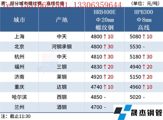 ◎濟南:20日早盤建材市場價格漲20。萊鋼螺紋4850,永鋒、石橫螺紋4850,永鋒、石橫盤螺5150。(單位:元/噸)