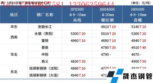 ◎ 沙鋼5月下旬建材調價:螺紋鋼平穩,HRB400Ф16-25mm螺紋出廠價格為5350元/噸;高線平穩,HPB300Ф6-10mm普碳高線執行價格5310元/噸;盤螺平穩,HRB400Ф8-10mm盤螺執行價格5400元/噸。