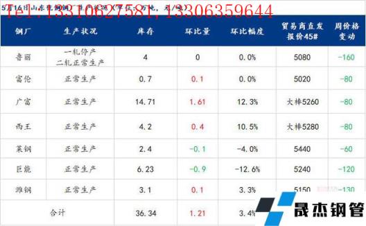 山東優特無縫厚壁鋼管廠家庫存34.95萬噸,環比下降1.39萬噸,降幅3.82%,同比增加14.04萬噸,增幅67.14%。生產方面:魯麗一軋停產,二軋正常生產;臨沂江泉停產。