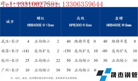 統一為理計單位后,武漢高于長沙4元/噸,南昌低于長沙141元/噸,杭州高于長沙25元/噸,廣州高于長沙10元/噸。