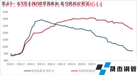 雖然4月上旬全球成品鋼價格延續上漲,致使北美、歐洲、土耳其等主要產鋼國日均產量小幅上漲(3-5%),但4月下旬成品鋼跌幅明顯大于原材料尤其是鐵礦石下跌幅度。表5為近三月美國和歐洲熱卷價格與鐵礦石價差,該價差僅取主流價格且未經嚴格計算不代表生產成本,僅作利潤變化的趨勢參考??梢姎W洲熱軋板卷與鐵礦石價差在3月中下旬達到高點后,在整個4、5月份連續下降,相比之下該價差在美國的降幅相對較小。