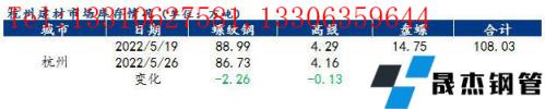 分品種來看,以杭州市場為例,本周杭州市場建筑厚壁無縫鋼管總庫存為102.80萬噸,其中螺紋鋼庫存86.73萬噸,周環(huán)比減少2.26萬噸,降幅為2.54%;盤螺11.91萬噸,周環(huán)比減少2.84萬噸,降幅為19.25%;線材4.16萬噸,周環(huán)比減少0.13萬噸,降幅為3.03%。
