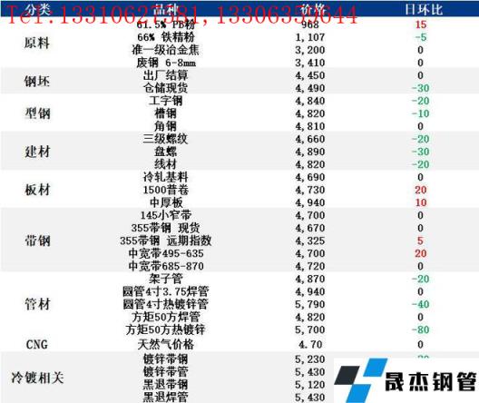 表:5月30日唐山鋼市主要品種價格一覽(單位:元/噸)